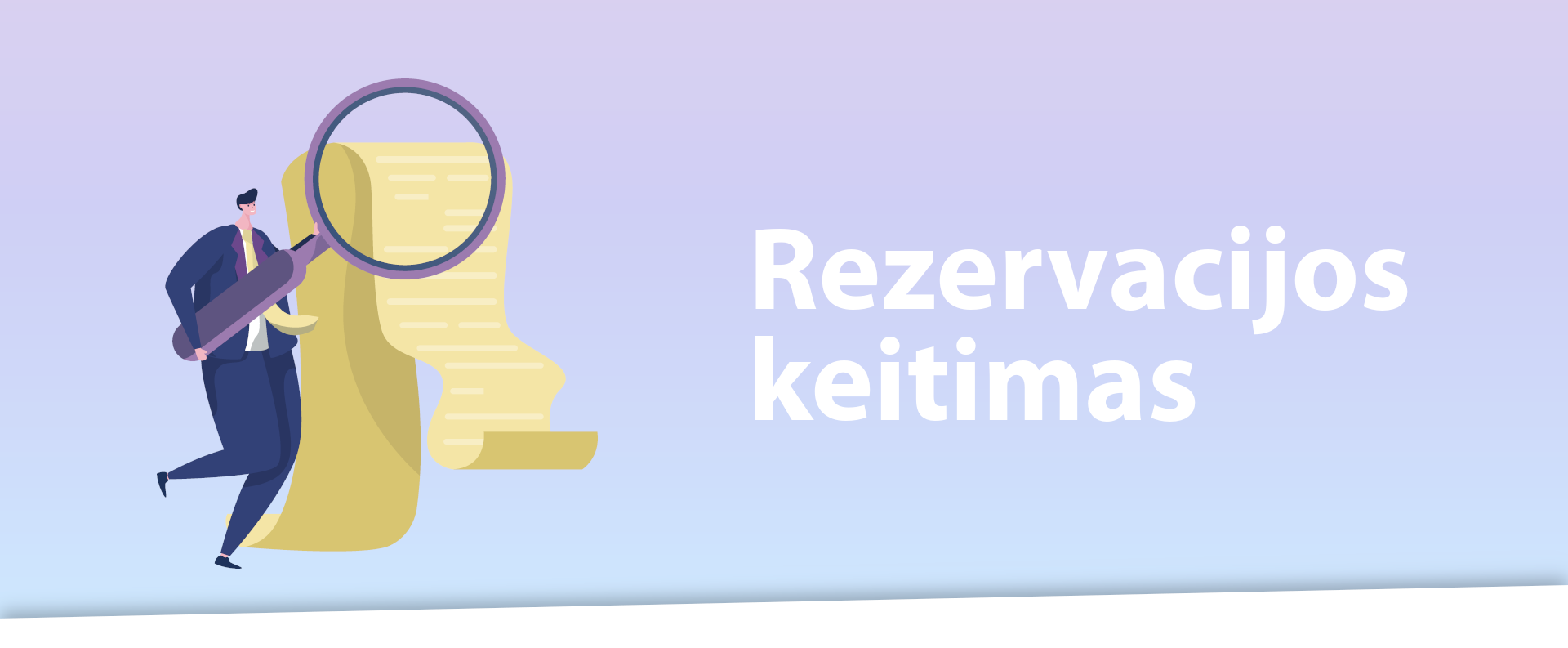 Esant poreikiui, bendru kelionės rezervaciją atlikusio asmens ir kelionės organizatoriaus susitarimu galima pakeisti rezervacijos duomenis. Pakeisti galima išvykimo datą (keitimas įmanomas tik į to paties sezono pasiūlymus), trukmę (išskyrus keitimą į trumpesnę atostogų trukmę), kryptį, viešbutį, kambario tipą arba keliaujančius asmenis. Keitimas galimas iki kelionės pradžios likus ne mažiau negu 22 dienos (keliaujančių asmenų keitimas - likus ne mažiau negu 2 dienos) iki kelionės pradžios.