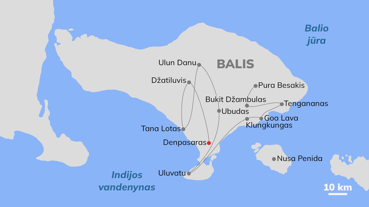 Nuostabi programa, kurioje atrasite svarbiausius paminklus, pamatysite kvapą gniaužiančius kraštovaizdžius ir pajusite egzotiškos Balio salos magiją. Pasirinkite salą, kurioje galėsite pasinerti į kultūrą, grožėdamiesi didingomis šventyklomis ir vaizdingomis ryžių terasomis. Atraskite atvirukų grožio paplūdimius ir išgyvenkite nepamirštamus nuotykius. Paragaukite vietinių delikatesų ir atsipalaiduokite, mėgaudamiesi gyvenimo pilnatve šioje stebuklingoje saloje.