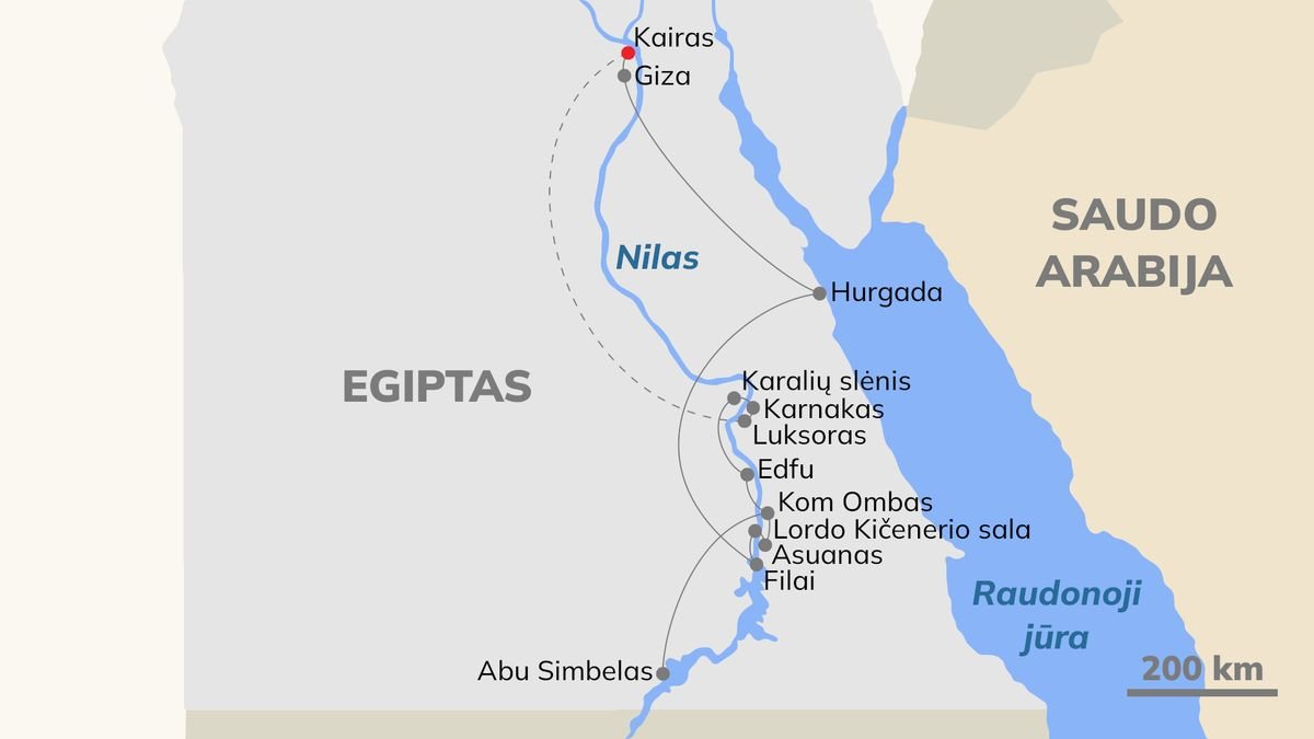 Nuostabi kelionė po Egiptą ir garsiausias faraonų šalies vietas. Maršrute – kontrastų kupinas Kairas su Egipto muziejumi, Egipto simboliai: Sfinksas ir Gizos piramidės. Leiskitės į kelionę Nilu iš Luksoro į Asuaną penkių žvaigždučių laivu. Taip Egipte kadaise keliavo faraonai, o šiandien tai puikus būdas keliauti. Kruizo programoje yra Karalių slėnis, kur buvo atrasta garsi Tutanchamono kapavietė, garsios Luksoro, Karnako, Kom Ombo, Edfu šventyklos ir įspūdingas Asuanas. Net 3 transporto priemonės: lėktuvas, autobusas ir laivas. Kelionės metu taip pat pailsėsite viešbutyje Hurgadoje.