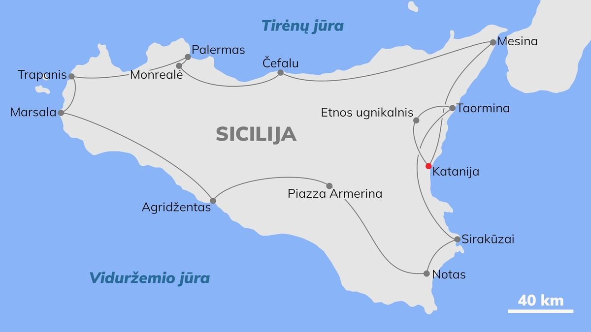 Egzotika, nepaprasti kraštovaizdžiai, didingasis Etnos ugnikalnis ir gyvybingasis Palermas – objektai, kurie jau šimtmečius žavi turistus iš viso pasaulio. Sicilija – mitais ir legendomis apipinta sala, su didingais senovės paminklais ir žaviu tautų bei kultūrų miksu. Profesionalūs gidai, intensyvi, tačiau nevarginanti pažintinė programa ir apgyvendinimas geruose viešbučiuose garantuoja įdomią pažintį su Sicilija.