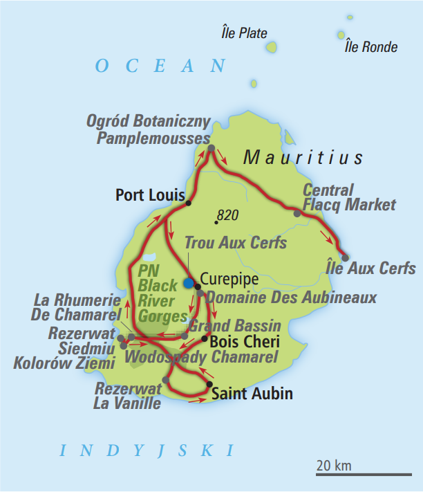Pusryčiai. Kelionė į PORT LUISĄ, Mauricijaus sostinę. Pasivaikščiojimas iki istorinės tvirtovės – Adelaidės forto, kuri iškilusi virš miesto. Laisvas laikas suvenyrinėms nuotraukoms. Kelionė į Šv. Liudviko katedrą, teatrą ir Valstybės rūmus, kurie anksčiau atliko tvirtovės funkciją, o šiandien yra oficiali prezidento rezidencija. Apsilankymas PAMPLIMUS BOTANIKOS SODE. Ši nuostabi vieta gali pasigirti nesuskaičiuojamu skaičiumi įvairių augalų rūšių, kurios buvo importuotos iš įvairių pasaulio kampelių prancūzų konsulo ir sodininko Pjero Puaro, kuris pradėjo dirbti su sodu XVIII a. pabaigoje, dėka. Šiuo metu jo plotas siekia keliasdešimt hektarų ir yra tikras rojus gamtos mylėtojams, taip pat puiki poilsio vieta. Apsilankymas SENTRAL FLAKO turguje, kuriame pardavėjai siūlo ne tik tropinius, sultingus vaisius, kurie traukia akį įvairiomis spalvomis, bet ir vietinius delikatesus, saldumynus ar drabužius. Verta paragauti ir cukranendrių sulčių. Grįžimas į viešbutį. Vakarienė. Nakvynė.