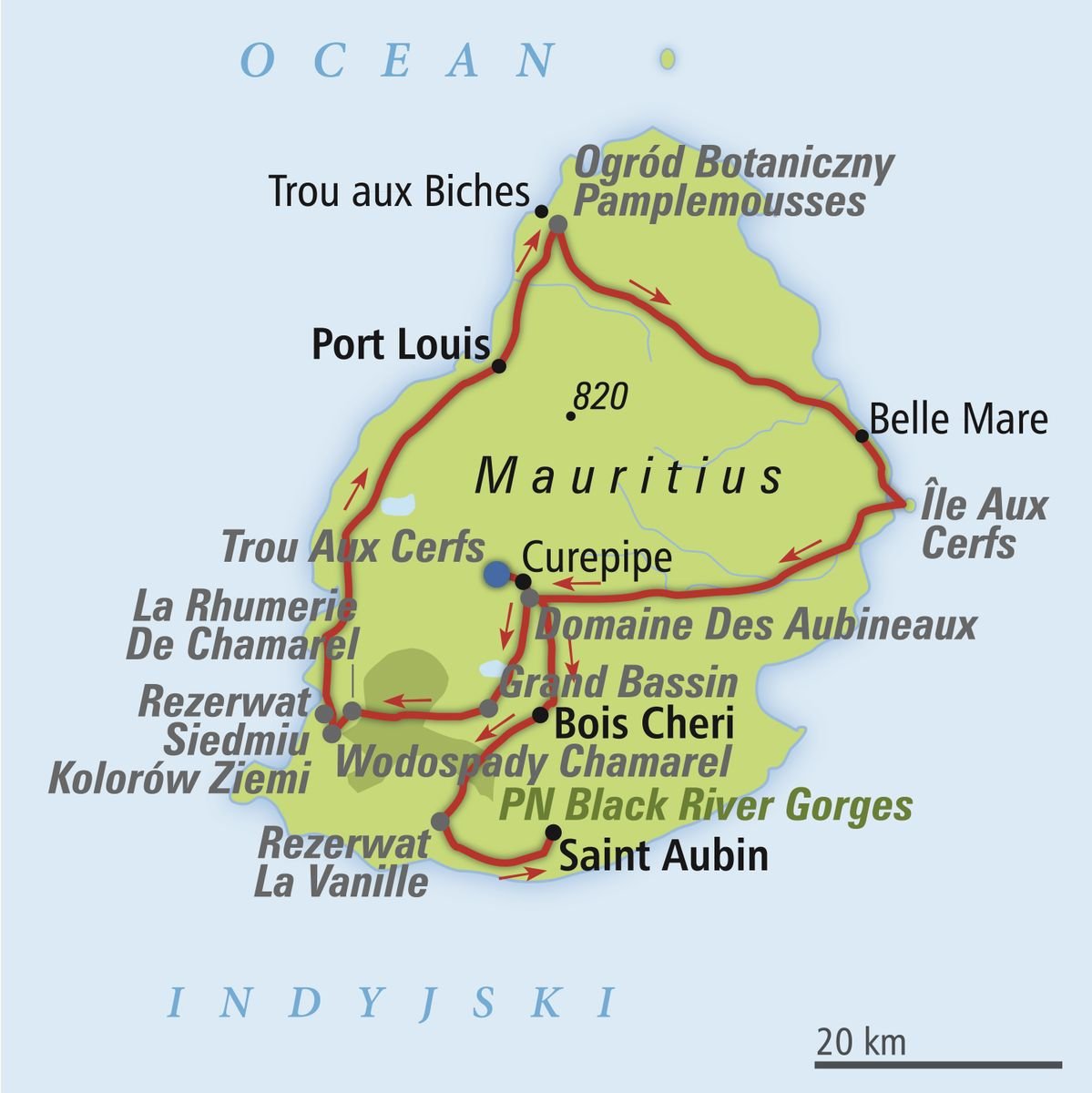 Pusryčiai. Laisvas laikas poilsiui viešbutyje arba fakultatyviai (už papildomą mokestį vietoje): pietinės salos dalies ekskursija. Pirmoji stotelė – DOMAINE DES AUBINEAUX, kolonijinis pirmųjų arbatos plantatorių namas, pastatytas 1872 m. Apsilankymas BOIS CHERI plantacijoje, kur galima paragauti vietinės arbatos. Toliau vykstama į LA VANILLE rezervatą, kuriame gyvena legvanai, Nilo krokodilai ir milžiniški vėžliai, atvežti iš Seišelių. Apsilankymo metu bus galima stebėti gyvūnų šėrimą, o netgi patiems dalyvauti. Rezervate taip pat yra insektariumas, kuriame sukauptos retos vabzdžių rūšys iš viso pasaulio. Pietūs su romo degustacija kolonijiniame SAINT AUBIN dvare, kur yra vanilės ir anturijų plantacijos, sena cukraus malūno ir distilerijos teritorija. Grįžimas į viešbutį. Vakarienė. Nakvynė.