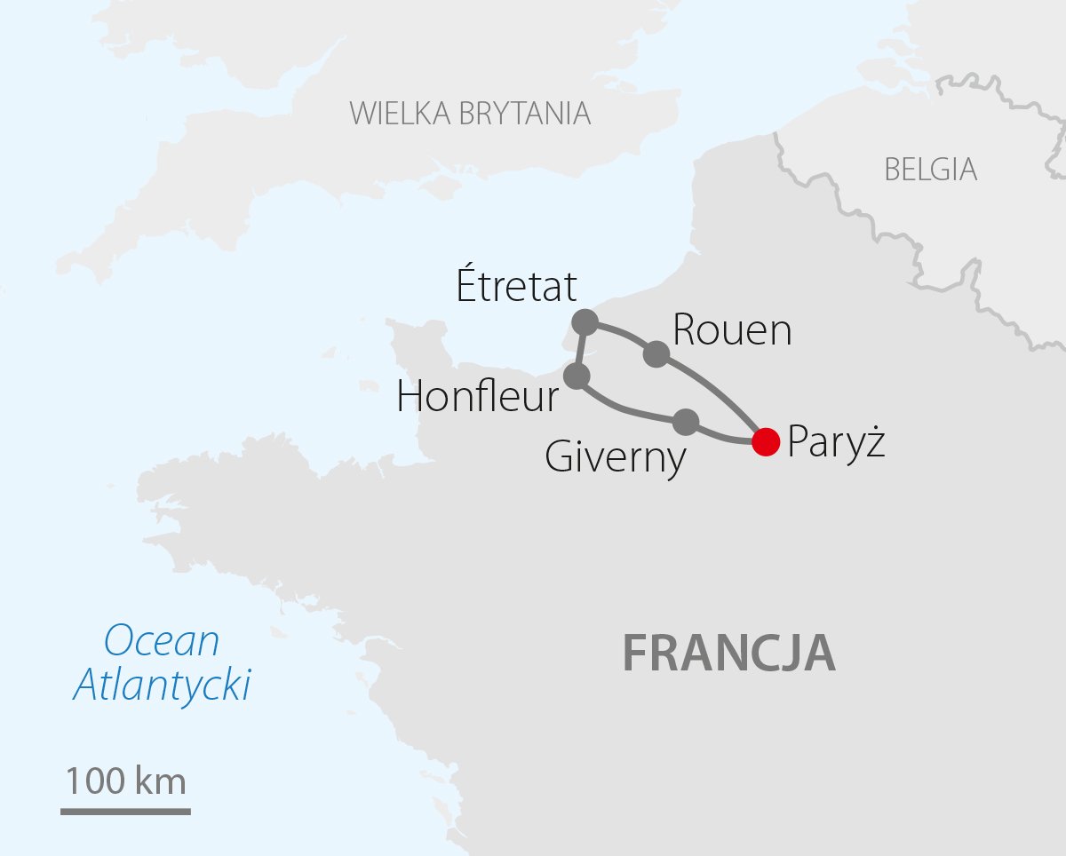 Pusryčiai. Išsiregistravimas. Važiuojame per Pont De Normandie į HONFLEUR – nedidelį, vaizdingą žvejų ir prekybos uostą, esantį kairiajame Senos žiočių krante, priešais Havrą. Seniausią miesto dalį sudaro: XVII a. Vieux Bassin – dabar jachtų prieplauka, Sainte-Catherine ir Saint-Étienne krantinės, medinė gotikinio liepsnojamojo stiliaus Šv. Kotrynos bažnyčia su atskira medine varpine. Išvykstame į GIVERNY, gražią kaimelį, kuriame paskutinius gyvenimo metus praleido Claude Monet, priimdamas pas save Cézanne'ą, Matisse'ą ir Renoirą. Čia jis nutapė, be kita ko, „Nenuferų“ ciklą. Giverny lankytojai gali vaikščioti tais pačiais takais, kuriais vaikščiojo genialus dailininkas, aplankyti Moneto namus ir sodą. Ypač verta dėmesio yra sodai: gėlių ir vandens, kuriuos suprojektavo ir rūpestingai prižiūrėjo Monet. Grįžtame į Paryžių. Apgyvendinimas. Nakvynė.