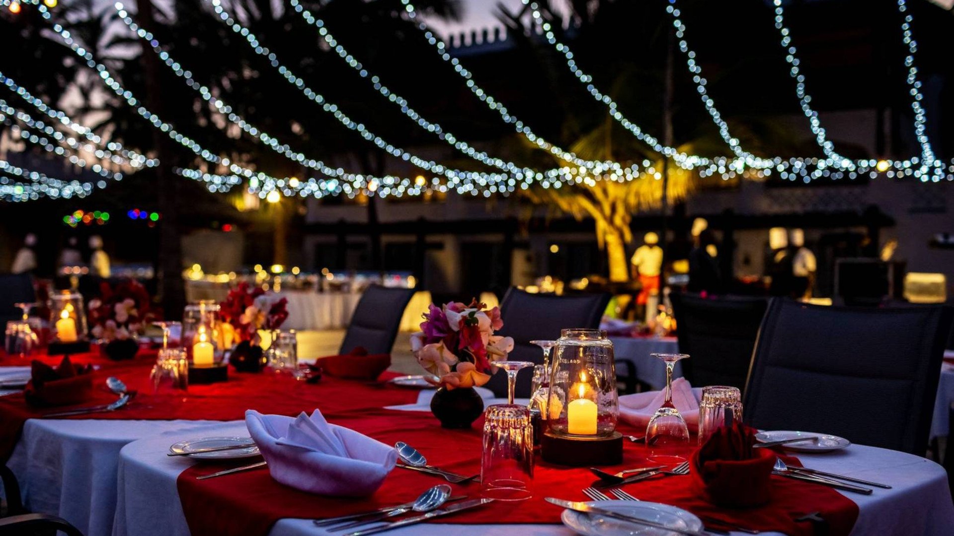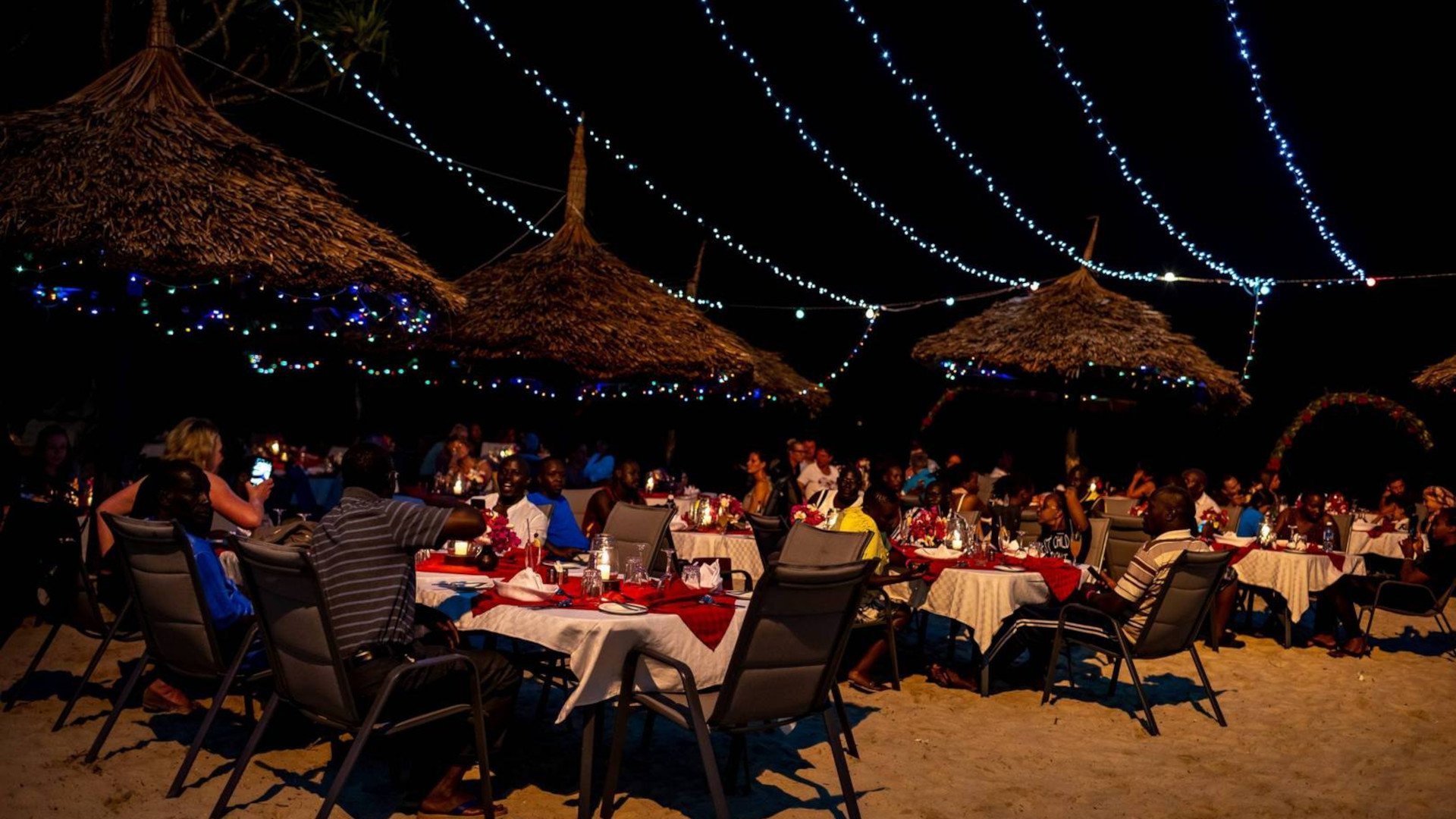 Pusryčiai (7.00-9.00), pietūs (12.30-14.30), vakarienė (19.00-21.00) pagrindiniame restorane; vakarienė itališkame restorane „La Via Romana“ arba „Manyatta Barbecue“ (būtina išankstinė rezervacija viešbučio registratūroje); popietinė arbata paplūdimio bare (16.00-17.00); užkandžiai „Boriti“ bare (12.00-17.00); vietiniai nealkoholiniai ir alkoholiniai gėrimai maitinimo metu ir baruose (10.00-23.30).