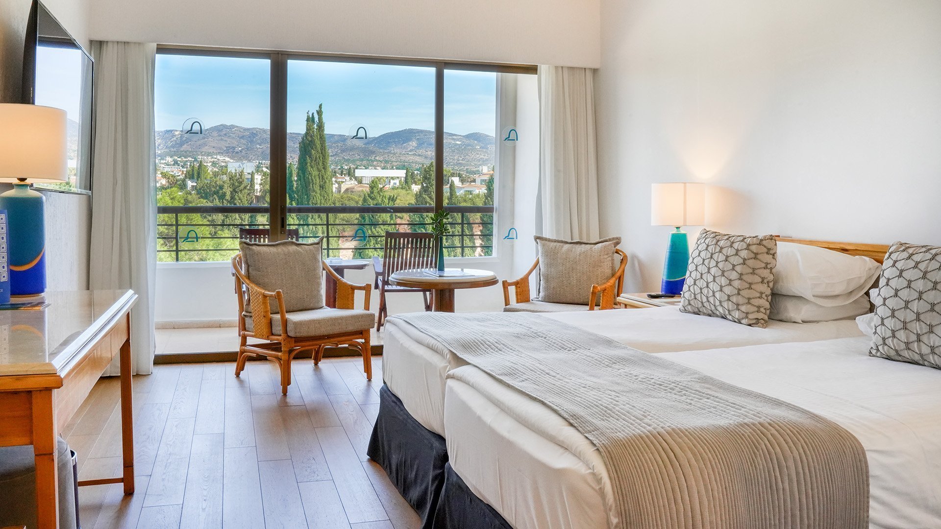 Puikiai įsikūręs, ramioje vietoje, netoli gražiausio paplūdimio Kipro vakarinėje pakrantėje – Coral Beach. Prie viešbučio yra privati marina ir atskira dalis viešajame paplūdimyje su nemokamu aptarnavimu. Šalia, žaliame ir gražiai sutvarkytame sode, yra lagūnos formos baseinas, kuriame dienos metu organizuojamos sporto veiklos. Erdvūs kambariai elegantiškai įrengti, o kiekviename yra nemokamas belaidis internetas. Viešbutis siūlo daugybę laisvalaikio praleidimo formų, pvz., rankdarbių centrą Arts & Crafts, o šeimoms su vaikais – The Coral Creche – profesionalus darželis. Čia taip pat yra didžiausias Kipro konferencijų centras su modernia įranga.
